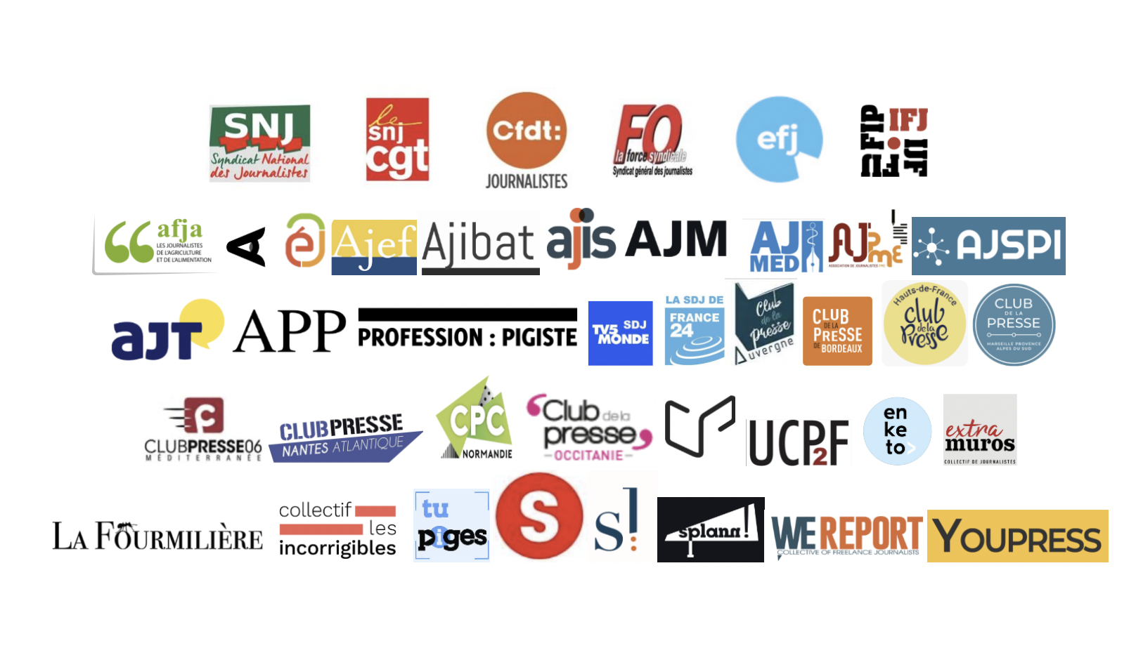 l’habitat et de la ville), AJIS (journalistes de l’information sociale), AJM (journalistes couvrant les médias),